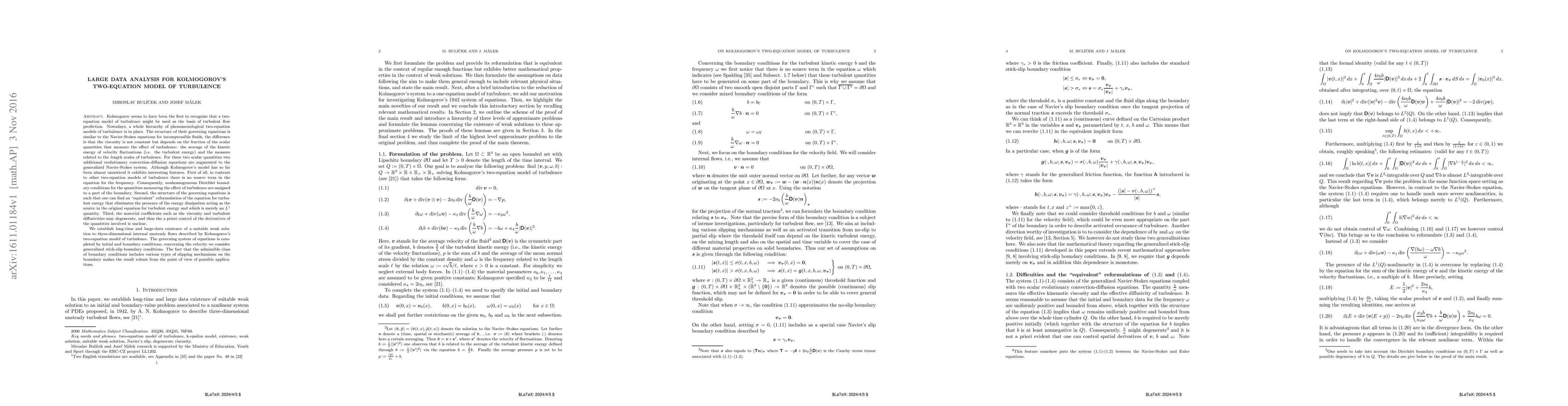 Researchers established a long-time and large-data solution to Kolmogorov's two-equation model of turbulence, enabling robust applications with various boundary conditions.