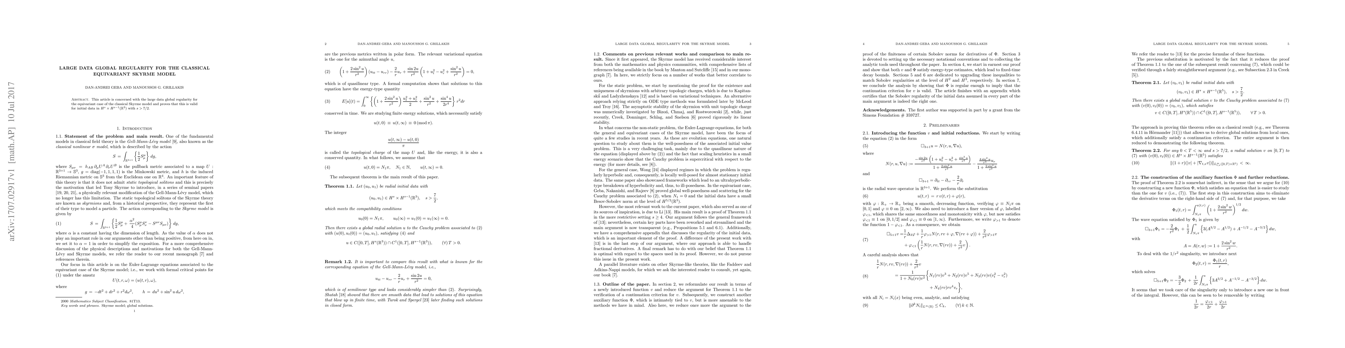 This research proves global regularity for a specific version of the Skyrme model, a theoretical physics framework, with large initial data in high-order Sobolev spaces, specifically $H^s imes H^{s-1}(mathbb{R}^3)$ for $s>7/2$.