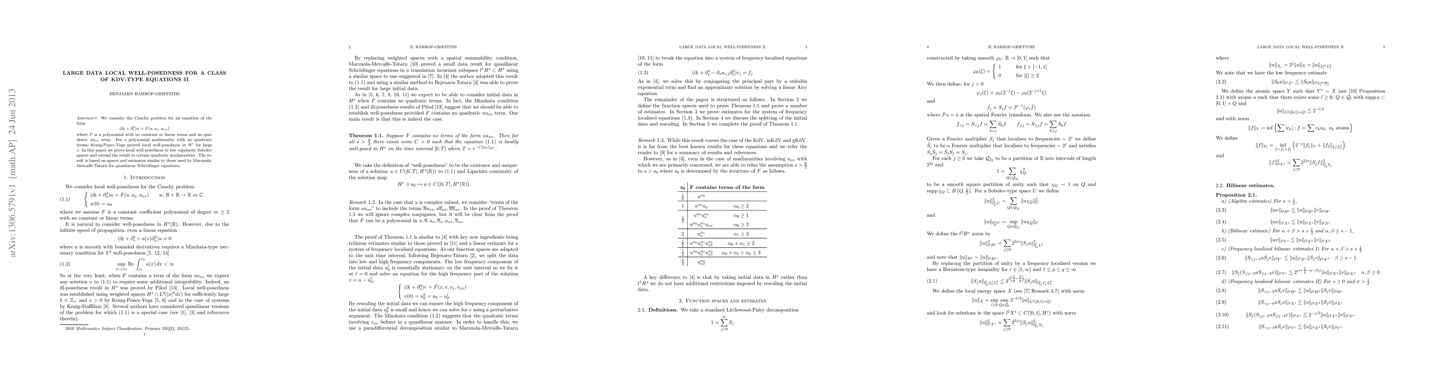 We consider the Cauchy problem for an equation of the form \partial_t+\partial_x^3)u=F(u,u_x,u_{xx}) where F is a polynomial with no constant or linear terms and no quadratic uu_{xx} term. For a polynomial nonlinearity with no quadratic terms, Kenig-Ponce-Vega proved local well-posedness in H^s for large s. In this paper we prove local well-posedness in low regularity Sobolev spaces and extend the result to certain quadratic nonlinearities. The result is based on spaces and estimates similar to those used by Marzuola-Metcalfe-Tataru for quasilinear Schrodinger equations.