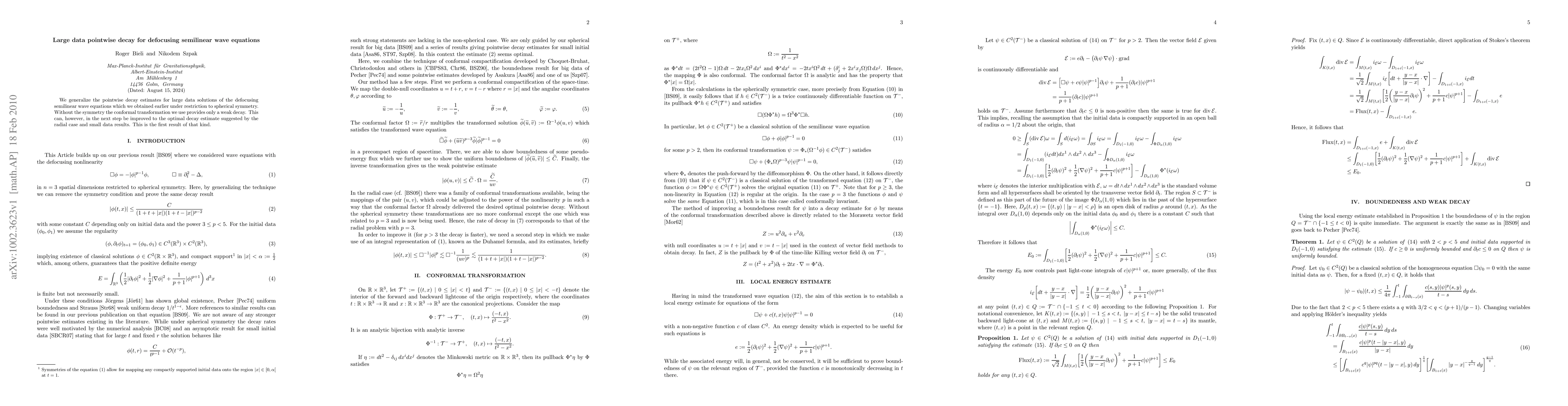 This paper generalizes pointwise decay estimates for large data solutions of defocusing semilinear wave equations, moving beyond spherical symmetry. The conformal transformation initially yields weak decay, which is subsequently improved to the optimal decay suggested by radial and small data results, marking the first such achievement without symmetry constraints.