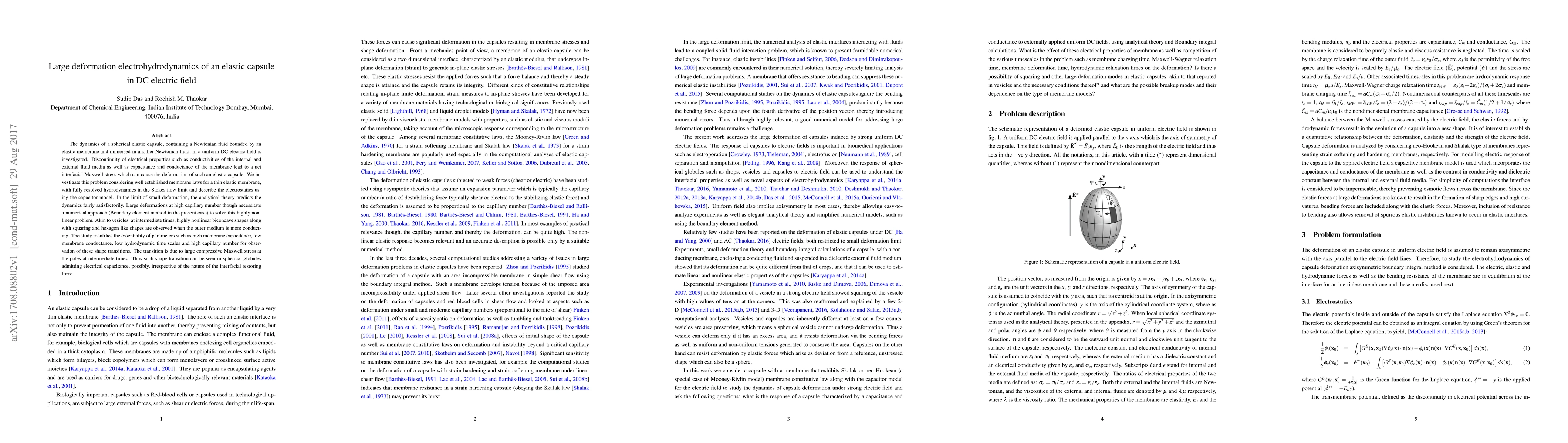 The dynamics of a spherical elastic capsule, containing a Newtonian fluid bounded by an elastic membrane and immersed in another Newtonian fluid, in a uniform DC electric field is investigated. Discontinuity of electrical properties such as conductivities of the internal and external fluid media as well as capacitance and conductance of the membrane lead to a net interfacial Maxwell stress which can cause the deformation of such an elastic capsule. We investigate this problem considering well established membrane laws for a thin elastic membrane, with fully resolved hydrodynamics in the Stokes flow limit and describe the electrostatics using the capacitor model. In the limit of small deformation, the analytical theory predicts the dynamics fairly satisfactorily. Large deformations at high capillary number though necessitate a numerical approach (Boundary element method in the present case) to solve this highly non-linear problem. Akin to vesicles, at intermediate times, highly nonlinear biconcave shapes along with squaring and hexagon like shapes are observed when the outer medium is more conducting. The study identifies the essentiality of parameters such as high membrane capacitance, low membrane conductance, low hydrodynamic time scales and high capillary number for observation of these shape transitions. The transition is due to large compressive Maxwell stress at the poles at intermediate times. Thus such shape transition can be seen in spherical globules admitting electrical capacitance, possibly, irrespective of the nature of the interfacial restoring force.