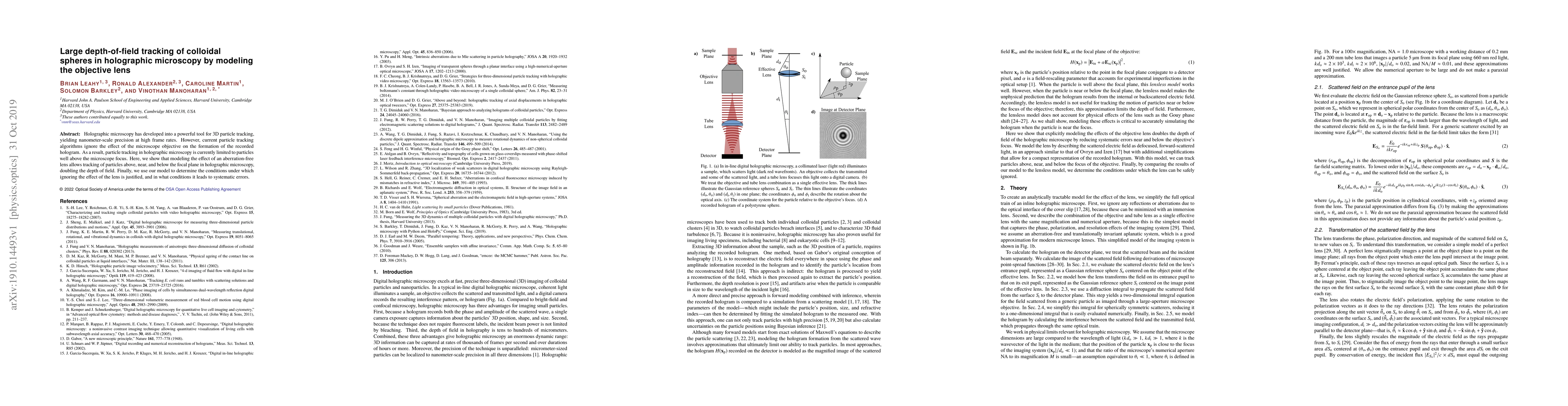 This paper presents a method to enhance depth-of-field tracking of colloidal spheres in holographic microscopy by accurately modeling the objective lens, thereby doubling the depth of field and enabling precise tracking across the entire focal plane. The study also identifies scenarios where lens effects can be neglected without significant errors.