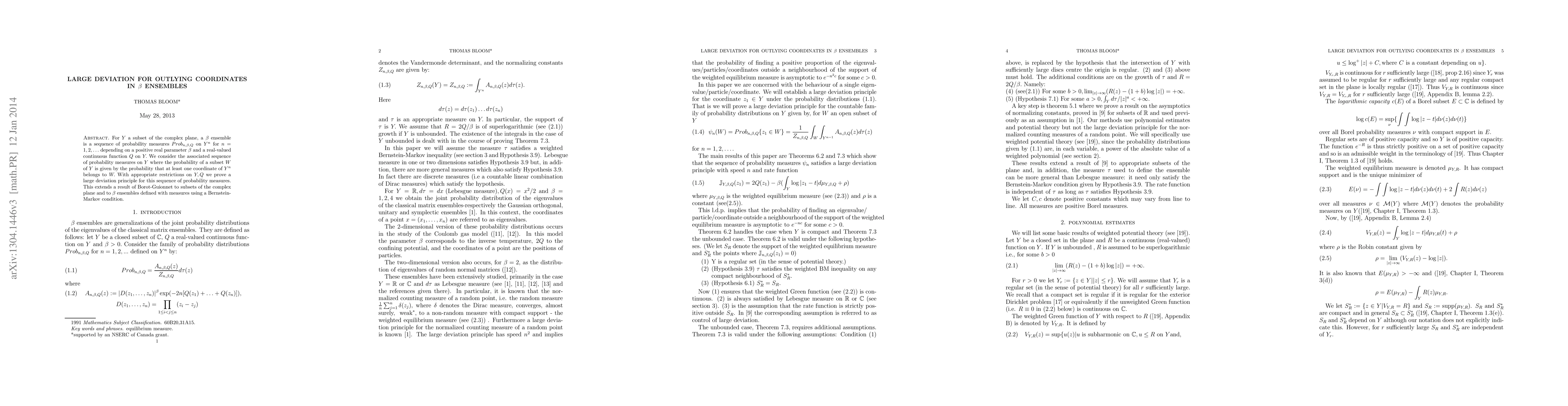 For Y a subset of the complex plane,a beta ensemble is a sequence of probability measures on Y^n for n=1,2,3...depending on a real-valued continuous function Q and a real positive parameter beta.We consider the associated sequence of probability measures on Y where the probability of a subset W is given by the probability that at least one coordinate of Y^n belongs to W. With appropriate restrictions on Y,Q we prove a large deviation principle for this sequence of measures. This extends a result of Borot-Guionnet to subsets of the complex plane and to beta ensembles defined with measures using a Bernstein-Markov condition.