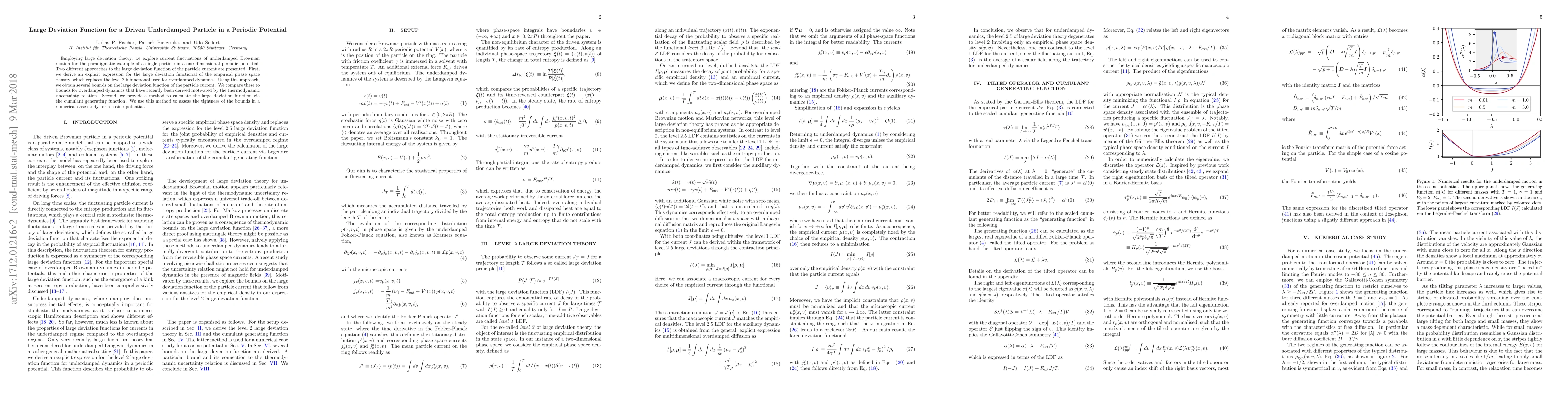 This paper investigates current fluctuations in underdamped Brownian motion for a particle in a periodic potential using large deviation theory. It presents two methods for deriving the large deviation function of the particle current, comparing results with bounds from overdamped dynamics and assessing their tightness through a numerical case study.