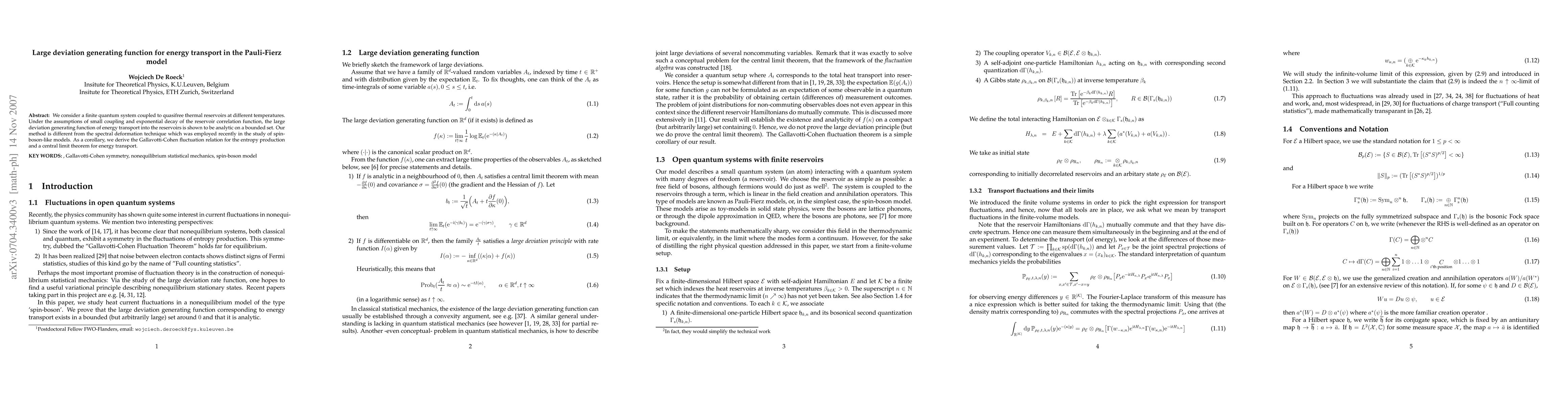 We consider a finite quantum system coupled to quasifree thermal reservoirs at different temperatures. Under the assumptions of small coupling and exponential decay of the reservoir correlation function, the large deviation generating function of energy transport into the reservoirs is shown to be analytic on a bounded set. Our method is different from the spectral deformation technique which was employed recently in the study of spin-boson-like models. As a corollary, we derive the Gallavotti-Cohen fluctuation relation for the entropy production and a central limit theorem for energy transport.