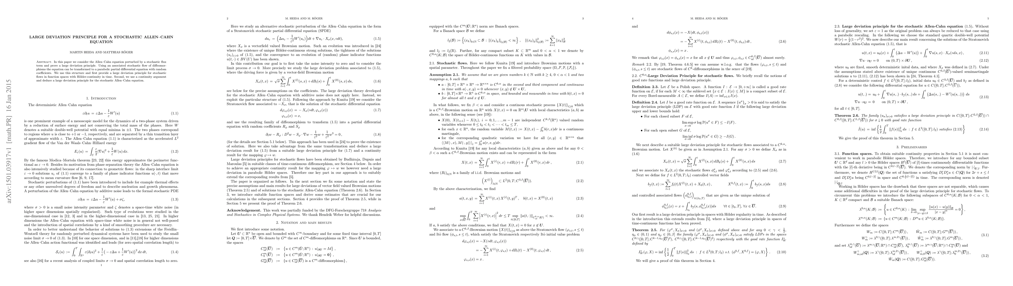 This paper establishes a large deviation principle for a stochastic Allen-Cahn equation perturbed by a stochastic flux term. It leverages a stochastic flow of diffeomorphisms to transform the equation into a parabolic PDE with random coefficients, proving a large deviation principle for the stochastic flow and subsequently for the stochastic Allen-Cahn equation.