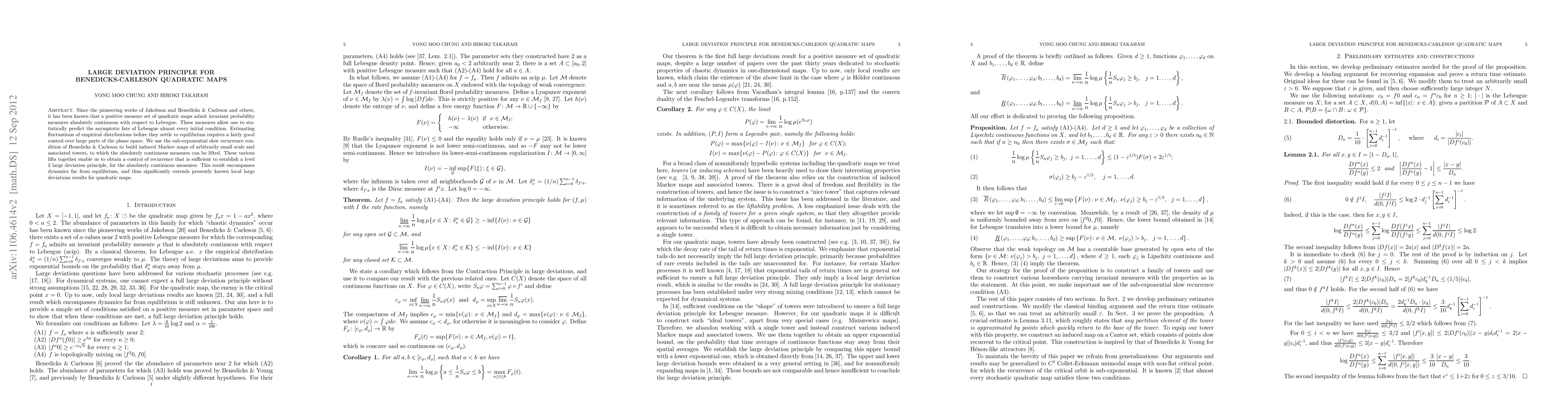 Since the pioneering works of Jakobson and Benedicks & Carleson and others, it has been known that a positive measure set of quadratic maps admit invariant probability measures absolutely continuous with respect to Lebesgue. These measures allow one to statistically predict the asymptotic fate of Lebesgue almost every initial condition. Estimating fluctuations of empirical distributions before they settle to equilibrium requires a fairly good control over large parts of the phase space. We use the sub-exponential slow recurrence condition of Benedicks & Carleson to build induced Markov maps of arbitrarily small scale and associated towers, to which the absolutely continuous measures can be lifted. These various lifts together enable us to obtain a control of recurrence that is sufficient to establish a level 2 large deviation principle, for the absolutely continuous measures. This result encompasses dynamics far from equilibrium, and thus significantly extends presently known local large deviations results for quadratic maps.