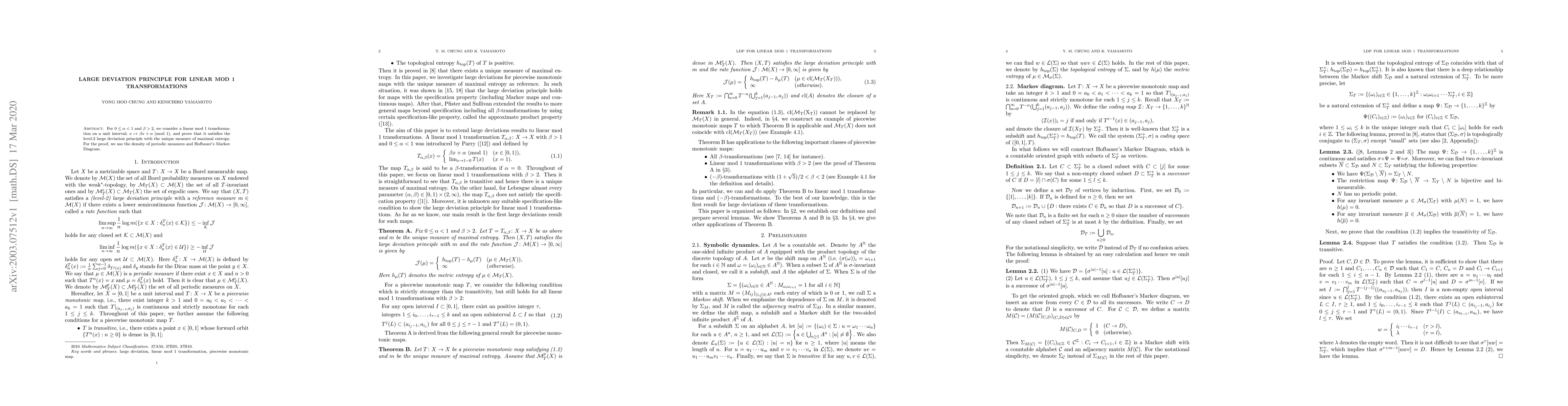 For $0\le \alpha <1$ and $\beta>2$, we consider a linear mod 1 transformation on a unit interval; $x\mapsto\beta x+\alpha$ (${\rm mod}\ 1$), and prove that it satisfies the level-2 large deviation principle with the unique measure of maximal entropy. For the proof, we use the density of periodic measures and Hofbauer's Markov Diagram.