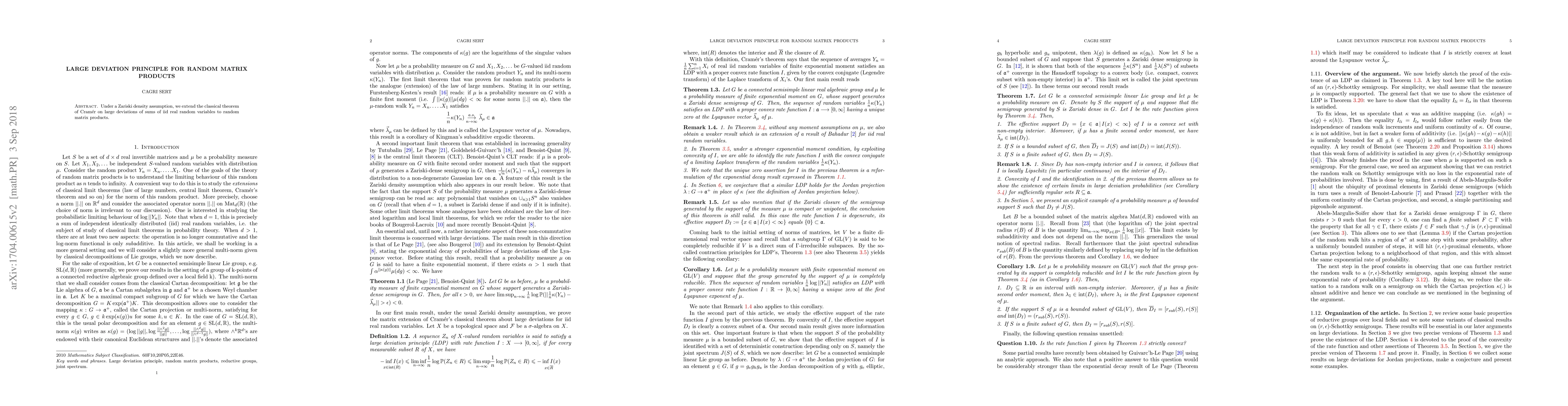 This work provides a significant contribution to our understanding of large deviations properties of random matrix products, with potential applications in statistical physics and other fields.