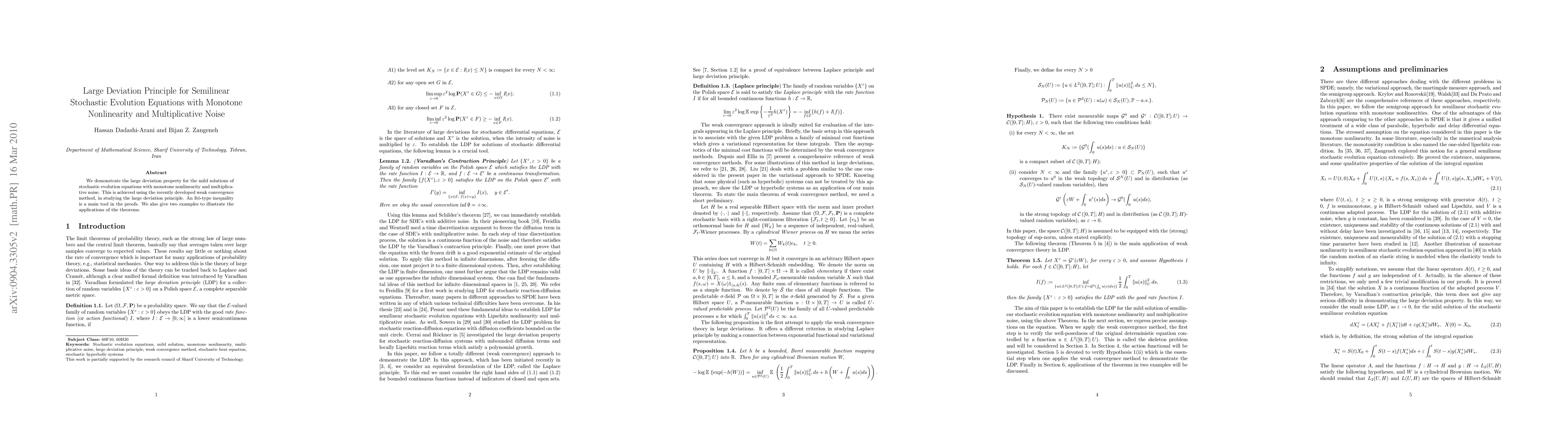 We demonstrate the large deviation property for the mild solutions of stochastic evolution equations with monotone nonlinearity and multiplica- tive noise. This is achieved using the recently developed weak convergence method, in studying the large deviation principle. An It^o-type inequality is a main tool in the proofs. We also give two examples to illustrate the applications of the theorems.