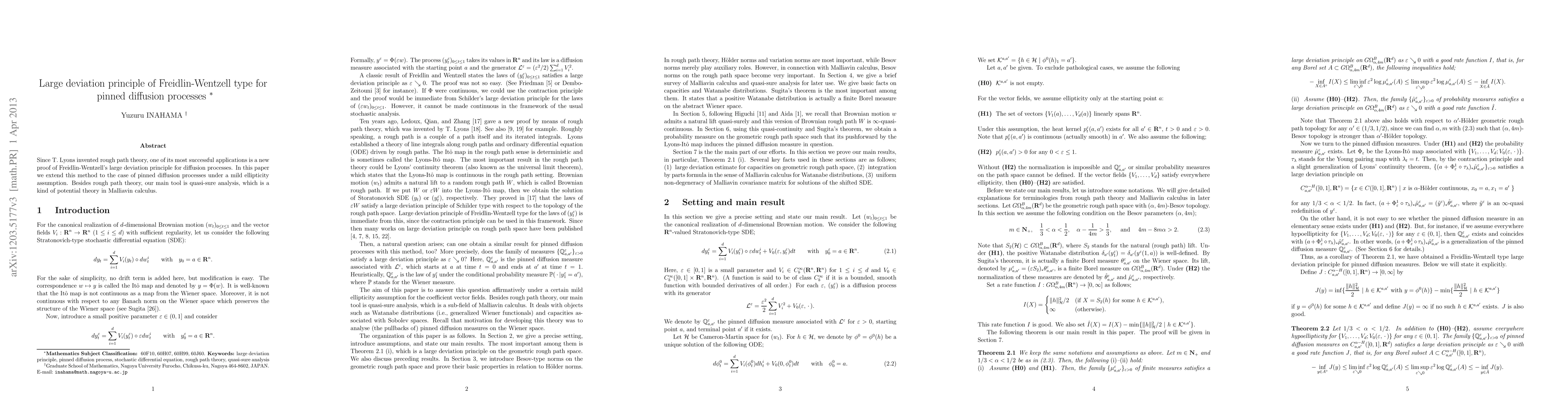 This paper extends the Freidlin-Wentzell large deviation principle to pinned diffusion processes using rough path theory and quasi-sure analysis under a mild ellipticity assumption. The method leverages both rough path theory and potential theory in Malliavin calculus for the analysis.