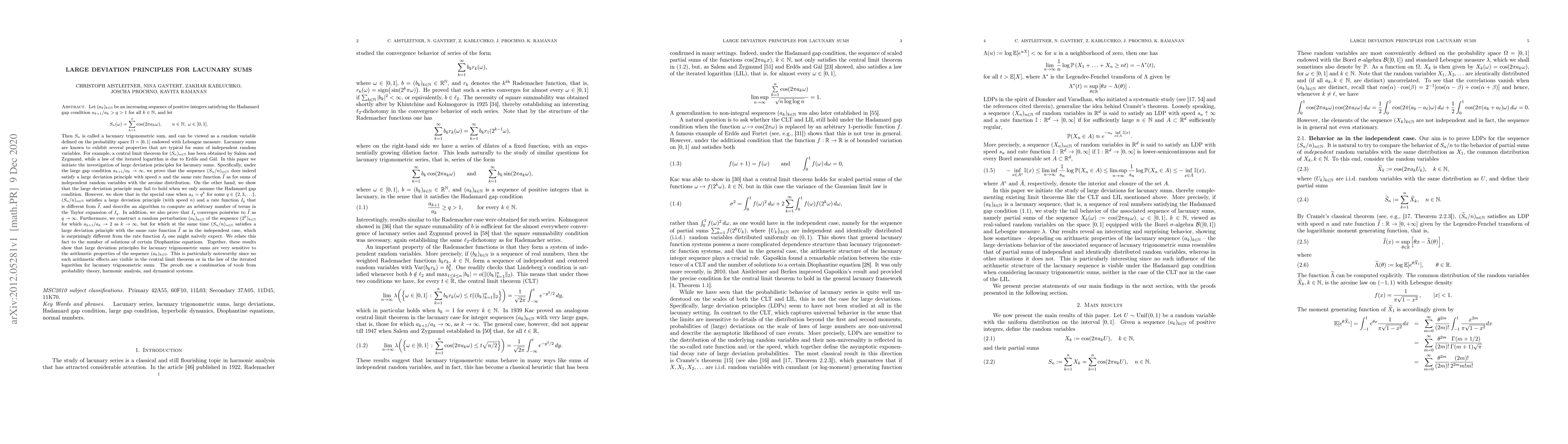 This paper investigates large deviation principles for lacunary trigonometric sums, finding that they exhibit properties similar to those of independent random variables under certain conditions, but also showing sensitivity to the arithmetic properties of the sequence used in the sum.