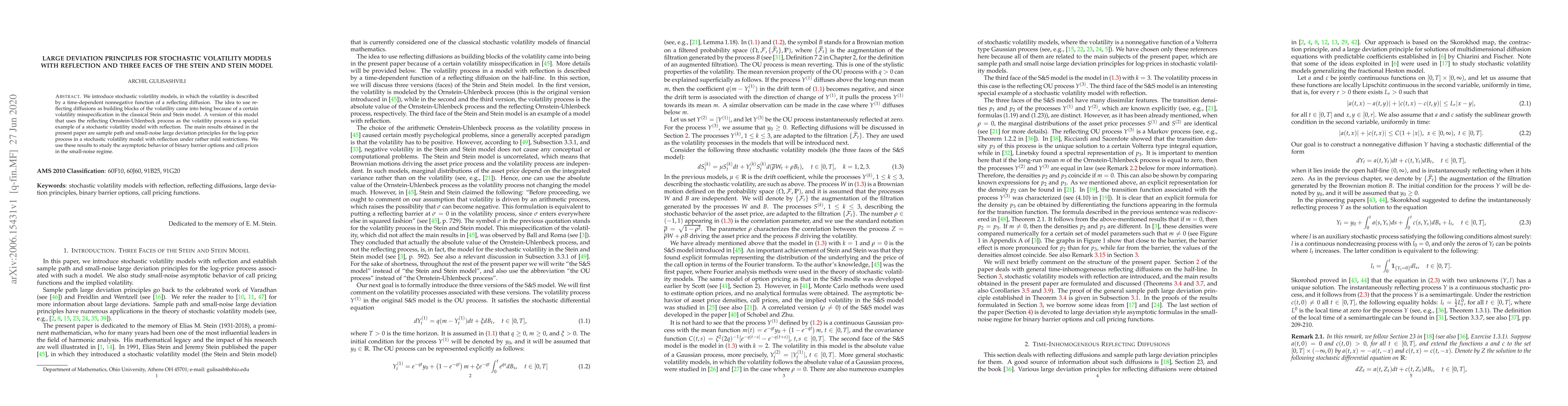 This paper develops stochastic volatility models with reflecting diffusions to address volatility misspecification in the classical Stein and Stein model. It establishes sample path and small-noise large deviation principles for the log-price process, and uses these results to analyze the asymptotic behavior of binary barrier options and call prices in the small-noise regime.