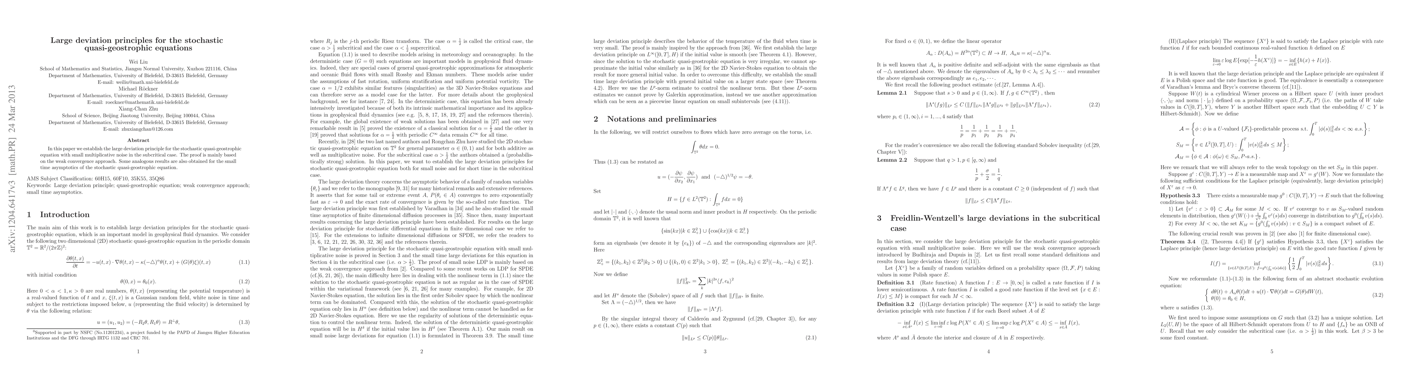 This paper establishes the large deviation principle for the stochastic quasi-geostrophic equation under subcritical conditions with small multiplicative noise, utilizing stochastic control and weak convergence methods. It also provides analogous results for the small time asymptotics of the equation.
