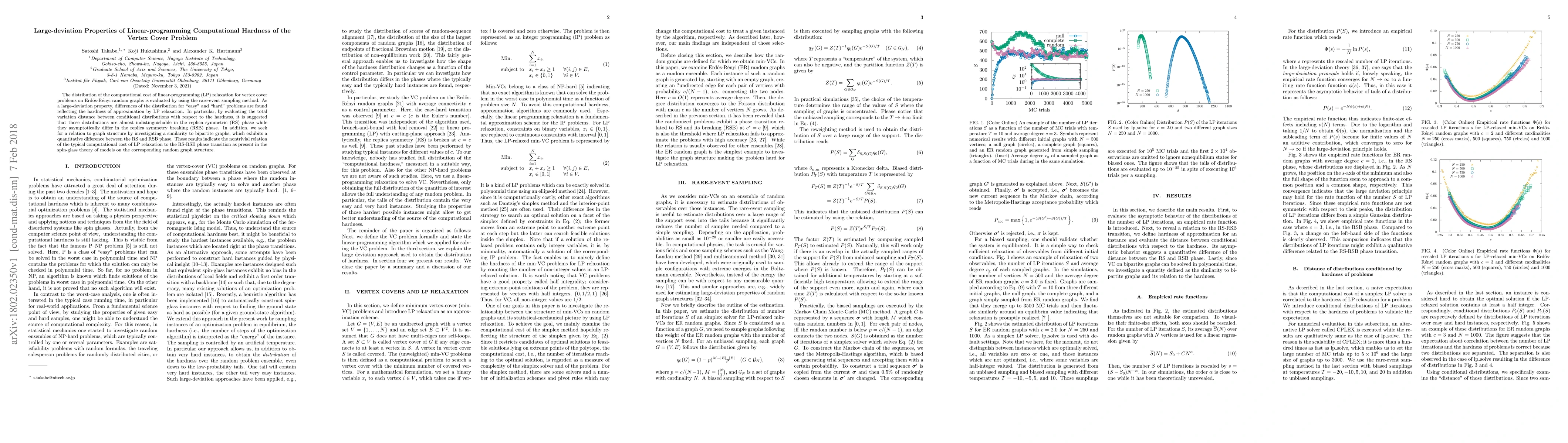 This paper investigates the large-deviation properties of the computational cost for linear-programming relaxation in the Vertex Cover Problem on Erdos-Renyi random graphs, revealing differences between "easy" and "hard" problems. The study finds that these distributions are almost indistinguishable in the replica symmetric phase but diverge in the replica symmetry breaking phase.