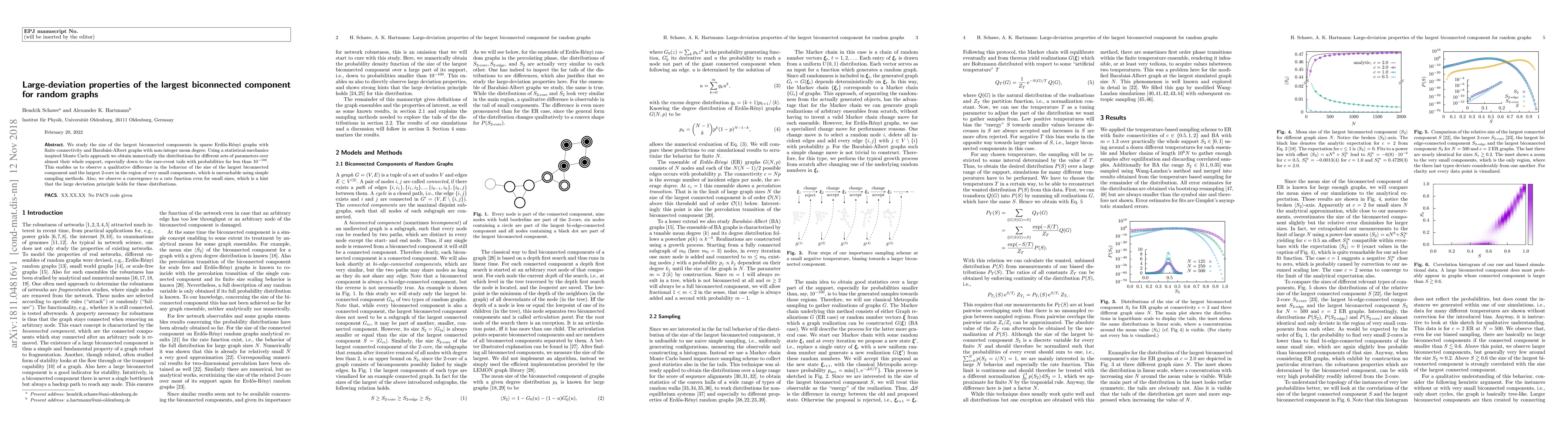 This study examines the size of the largest biconnected component in random graphs using a statistical-mechanics inspired approach, revealing a qualitative difference between biconnected components and 2-core sizes for very small components.