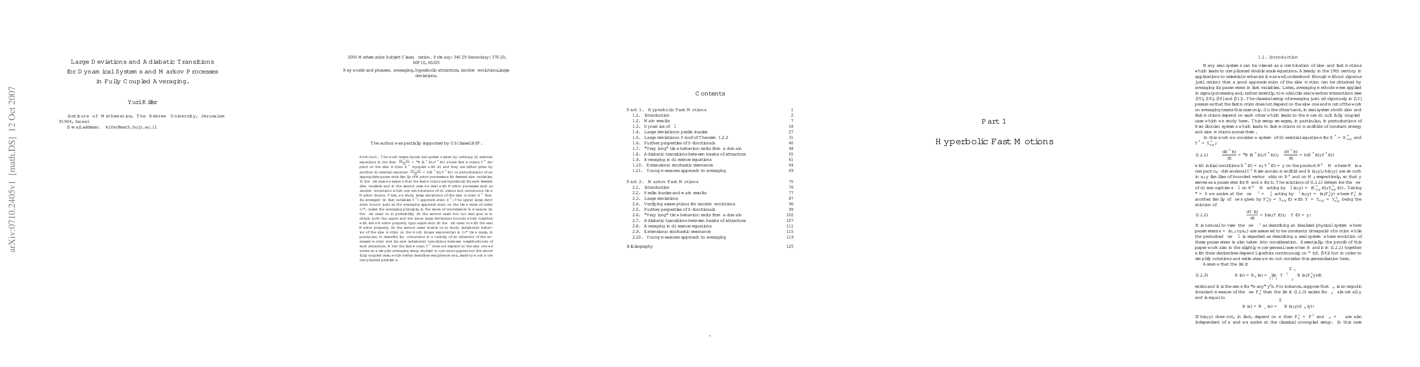 The work treats systems combining slow and fast motions depending on each other where fast motions are perturbations of families of either dynamical systems or Markov processes with freezed slow variable. In the first case we consider hyperbolic dynamical systems and in the second case we deal with random evolutions which are combinations of diffusions and continuous time Markov chains. We study first large deviations of the slow motion from the averaged one and then use these results together with some Markov property type arguments in order to describe very long time behavior of the slow motion such as its transitions between attractors of the averaged system.