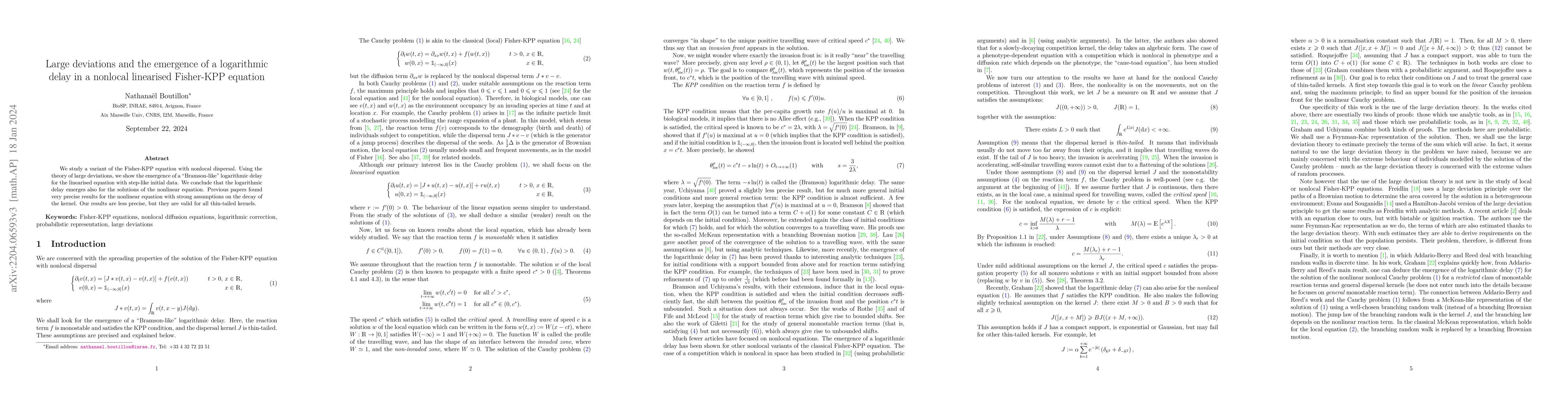 This paper investigates a nonlocal variant of the Fisher-KPP equation, demonstrating a "Bramson-like" logarithmic delay using large deviations theory. Unlike previous studies, it achieves this result for all continuous symmetric thin-tailed kernels without strong decay assumptions.