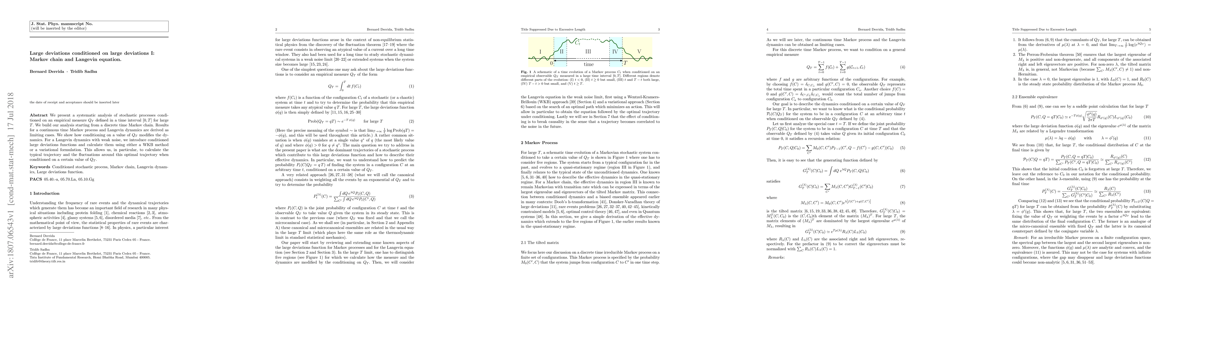 This paper systematically analyzes stochastic processes conditioned on large empirical measures $Q_T$ over long time intervals $[0,T]$. It starts with a discrete time Markov chain and extends to continuous time processes and Langevin dynamics, showing how conditioning alters dynamics. The study introduces conditioned large deviations functions for weak noise Langevin dynamics, enabling calculations of typical trajectories and fluctuations under specific $Q_T$ conditions.