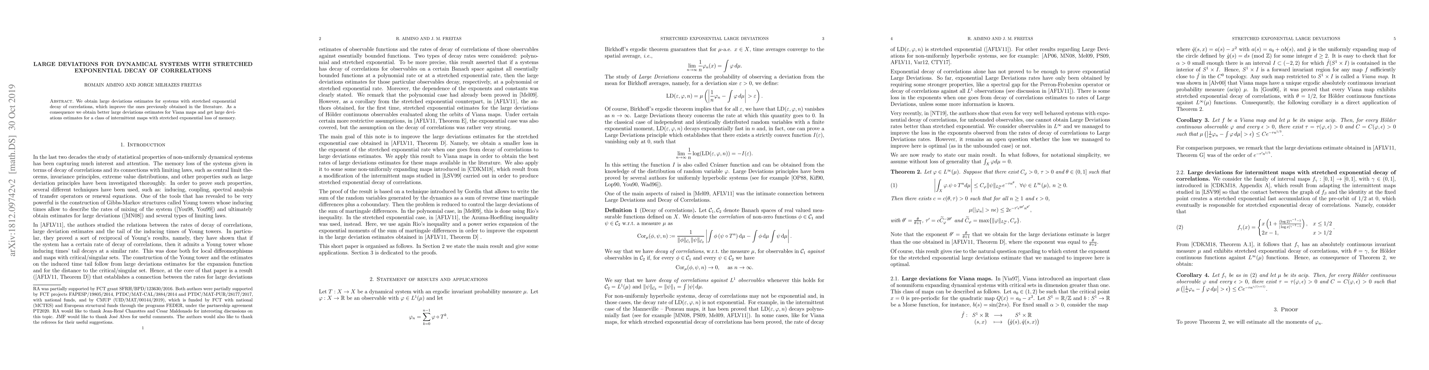 We obtain large deviations estimates for systems with stretched exponential decay of correlations, which improve the ones obtained in \cite{AFLV11}. As a consequence we obtain better large deviations estimates for Viana maps and get large deviations estimates for a class of intermittent maps with stretched exponential loss of memory.