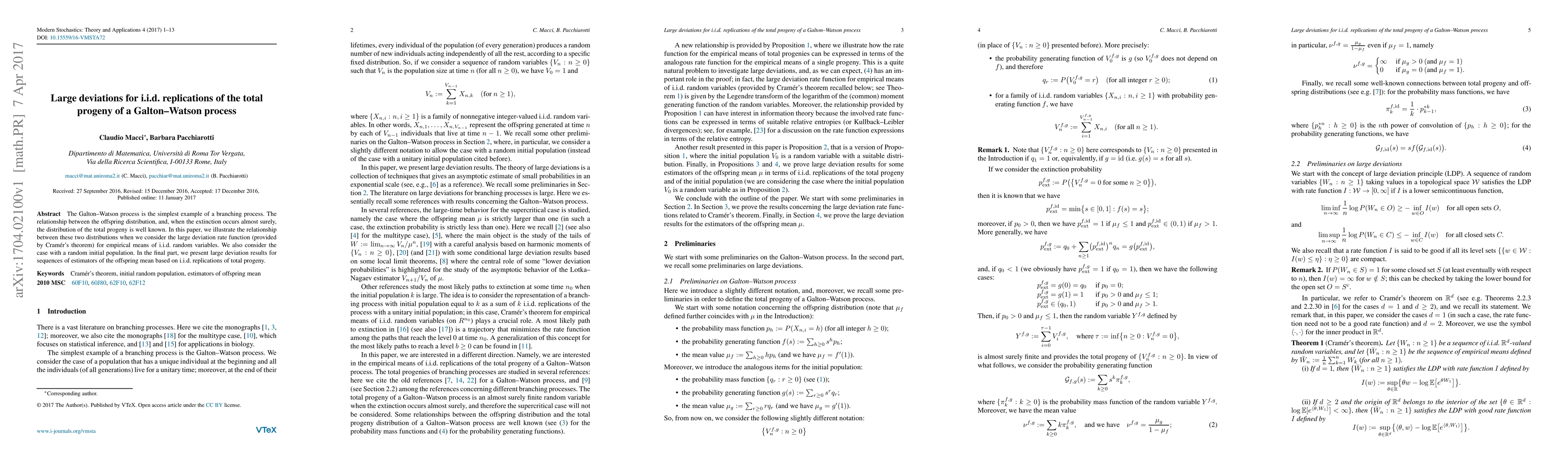This paper explores large deviation principles for the total progeny in a Galton-Watson process, focusing on empirical means of i.i.d. replications and the impact of random initial populations. It also presents large deviation results for estimators of the offspring mean derived from these replications.