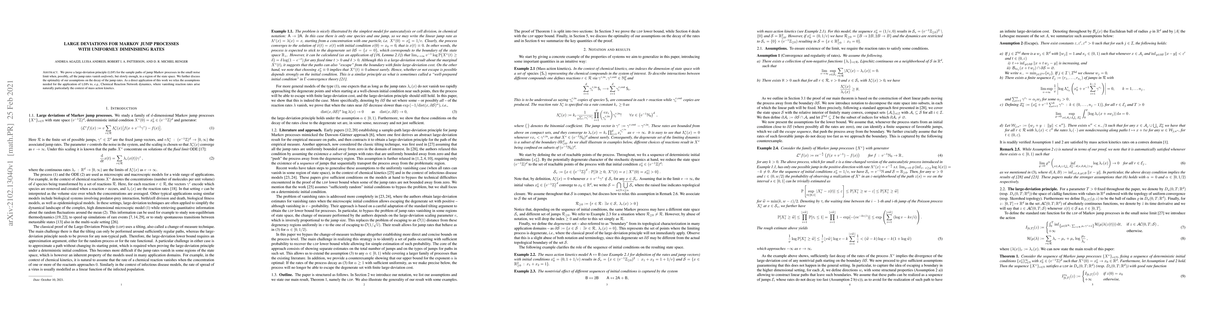 This paper establishes a large-deviation principle for Markov jump processes with slowly diminishing jump rates, demonstrating its applicability to Chemical Reaction Network dynamics, particularly in scenarios where reaction rates vanish. The study also assesses the optimality of the assumptions regarding the rate decay.