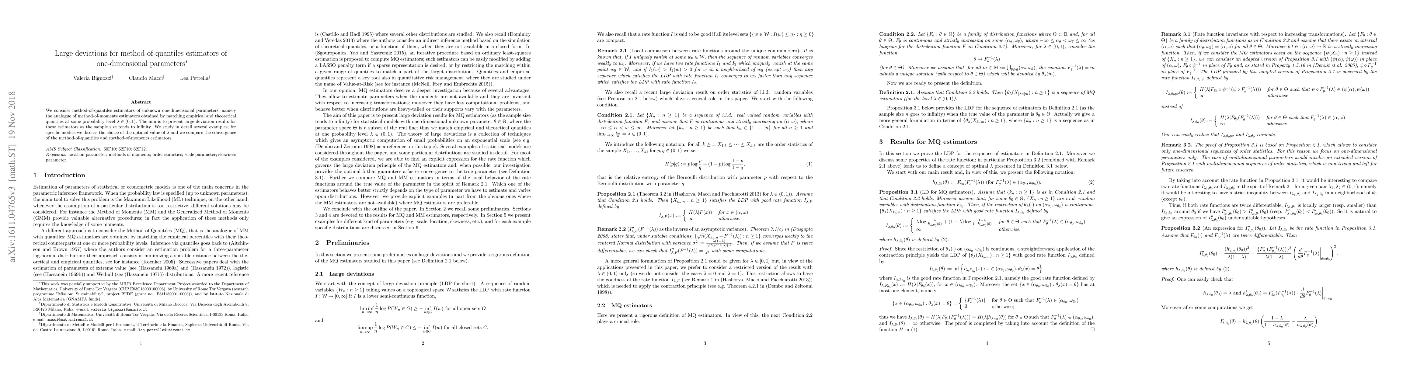 This paper investigates method-of-quantiles estimators for one-dimensional parameters, comparing them to method-of-moments estimators, and presents large deviation results as sample size increases. It also explores optimal quantile levels and compares convergence rates for specific models.