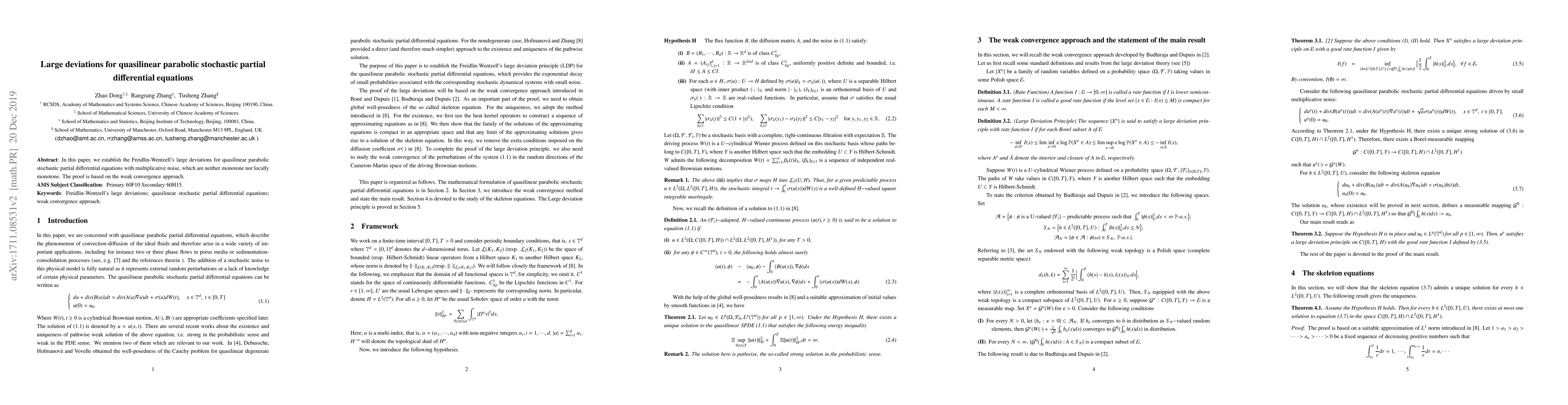 Summary: This paper establishes Freidlin-Wentzell large deviations principles for quasilinear parabolic stochastic partial differential equations with multiplicative noise, demonstrating results for non-monotonic equations using a weak convergence approach.