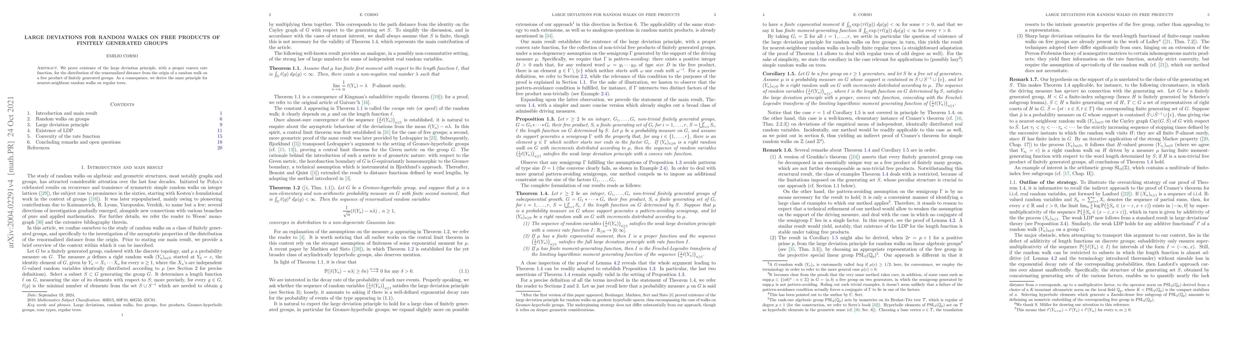 Summary: The paper establishes the large deviation principle for random walks on free products of finitely generated groups, characterized by a proper convex rate function, and extends this result to nearest-neighbour random walks on regular trees.