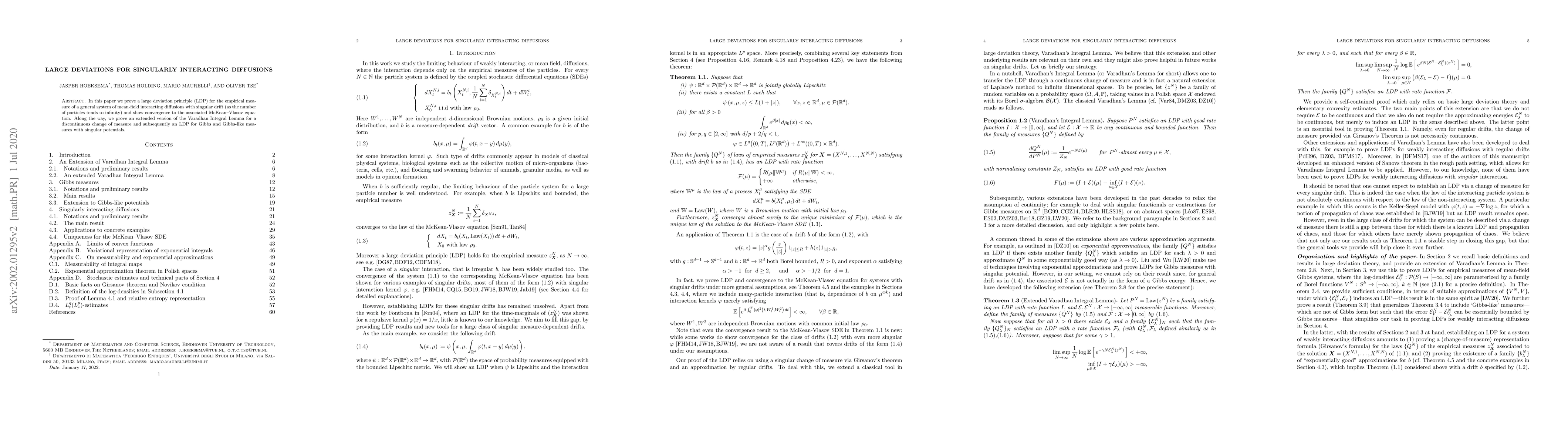 This work is significant as it extends the understanding of large deviations for systems with singular interactions, which are prevalent in various fields including physics, finance, and biology.