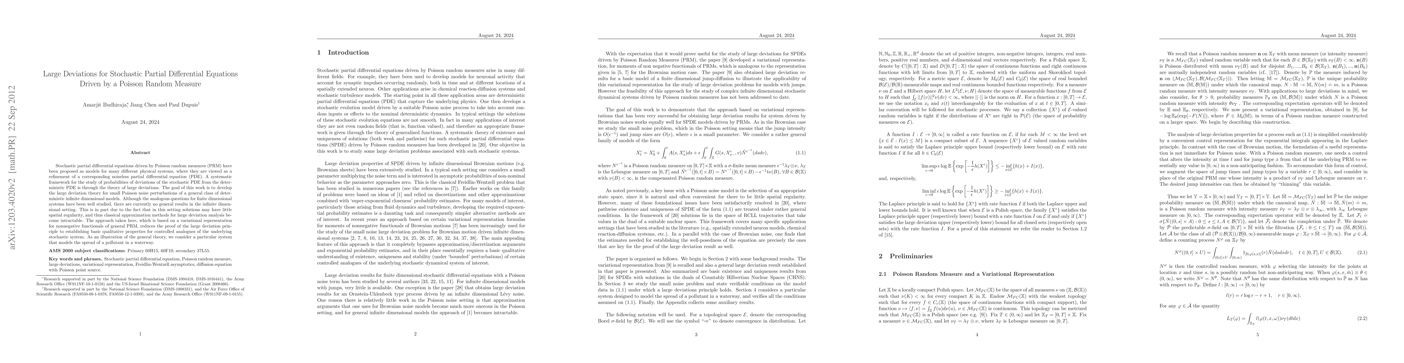 This paper develops a large deviation theory for stochastic partial differential equations driven by Poisson random measures, focusing on small perturbations of deterministic models. It introduces a variational approach to establish the large deviation principle in the infinite-dimensional setting, illustrating the theory with a pollutant spread model in a waterway.