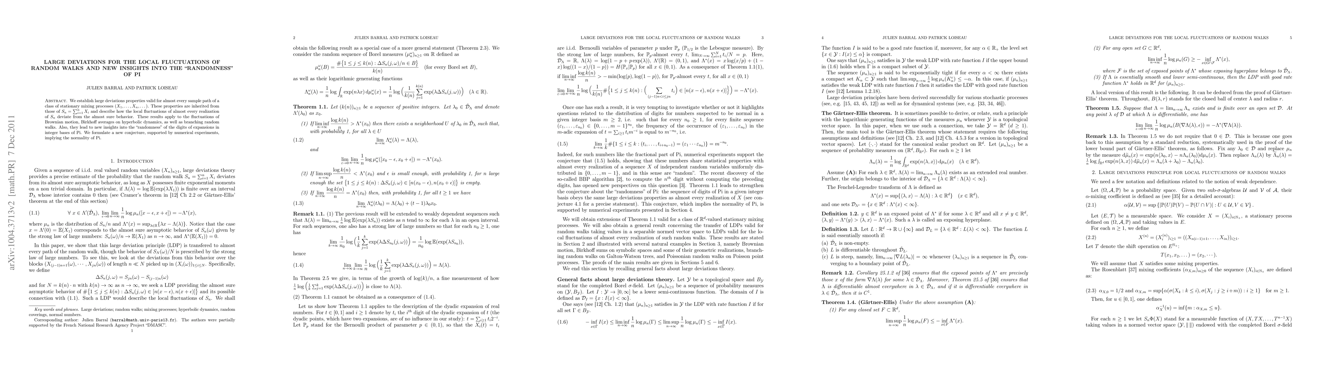This research paper establishes large deviations properties for various random processes, including Brownian motion and branching random walks, which lead to new insights into the randomness of Pi's digits, suggesting a normal distribution.
