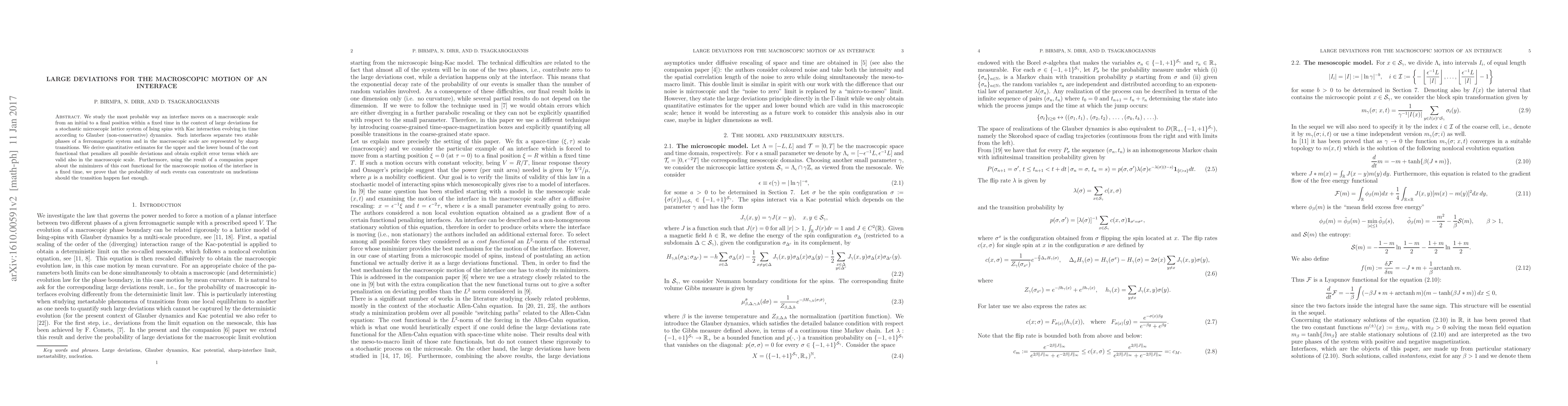 We study the most probable way an interface moves on a macroscopic scale from an initial to a final position within a fixed time in the context of large deviations for a stochastic microscopic lattice system of Ising spins with Kac interaction evolving in time according to Glauber (non-conservative) dynamics. Such interfaces separate two stable phases of a ferromagnetic system and in the macroscopic scale are represented by sharp transitions. We derive quantitative estimates for the upper and the lower bound of the cost functional that penalizes all possible deviations and obtain explicit error terms which are valid also in the macroscopic scale. Furthermore, using the result of a companion paper about the minimizers of this cost functional for the macroscopic motion of the interface in a fixed time, we prove that the probability of such events can concentrate on nucleations should the transition happen fast enough.