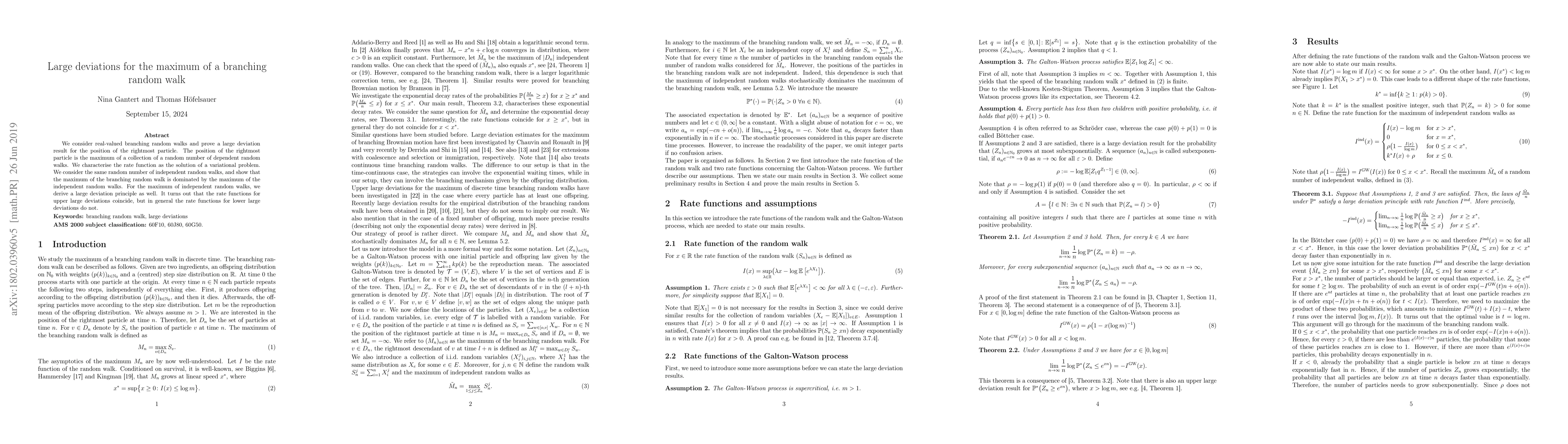 Researchers prove a large deviation result for the maximum position of branching random walks, showing it is dominated by independent random walks with similar rate functions for upper deviations but not lower deviations.