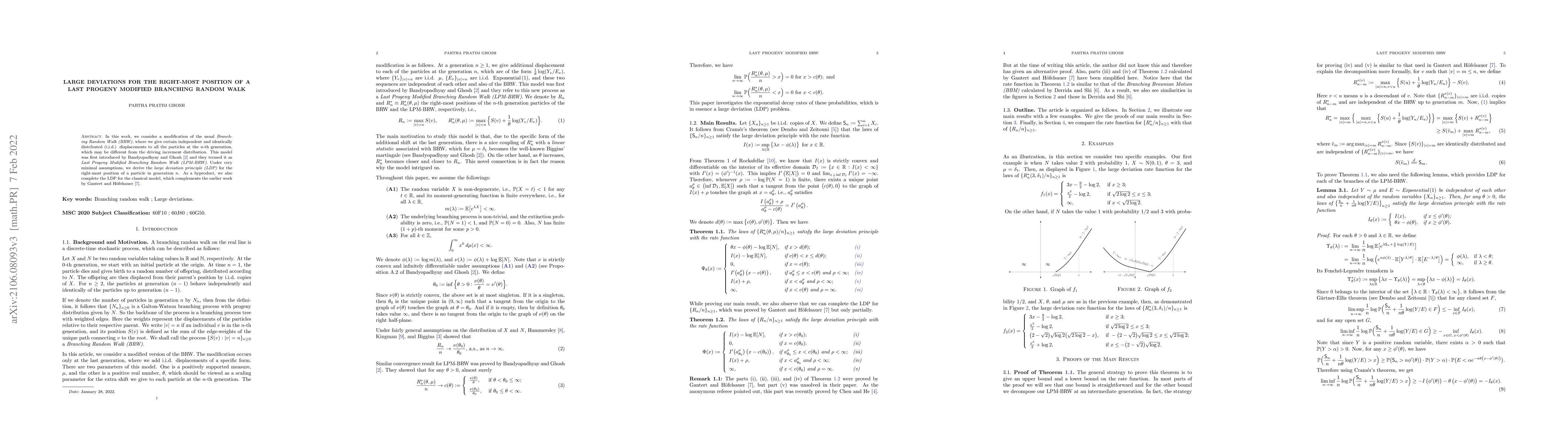 This paper derives a large deviation principle for the right-most position of particles in a modified Branching Random Walk model, complementing earlier work on the classical model. The findings focus on the LDP under minimal assumptions, providing new insights into particle behavior.