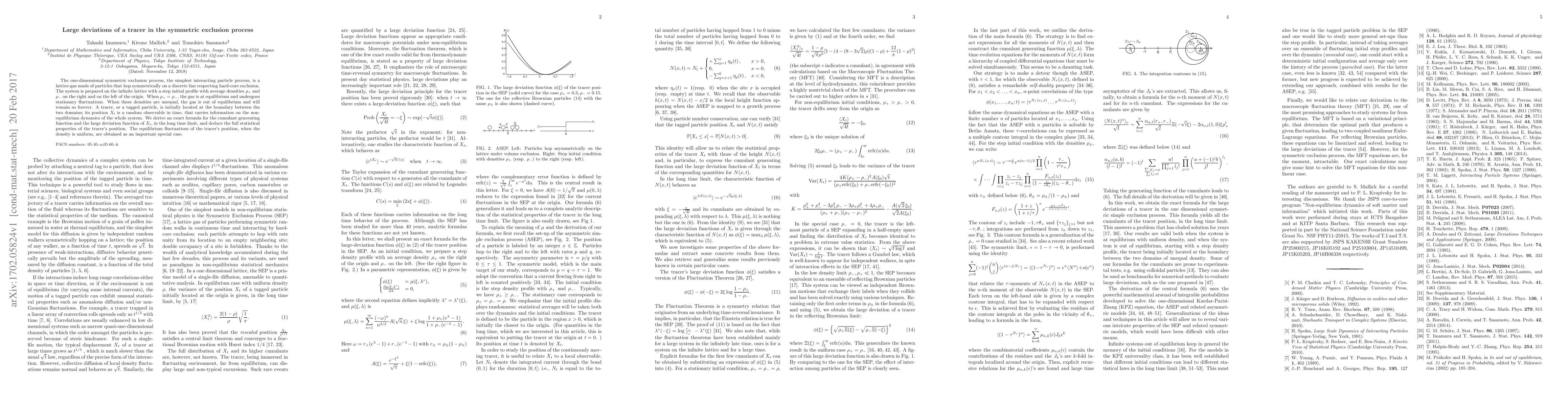 This paper studies the one-dimensional symmetric exclusion process with unequal initial densities, focusing on the dynamics of a tracer particle. It derives an exact formula for the cumulant generating function and the large deviation function of the tracer's position, revealing the statistical properties of the tracer's movement in non-equilibrium conditions.