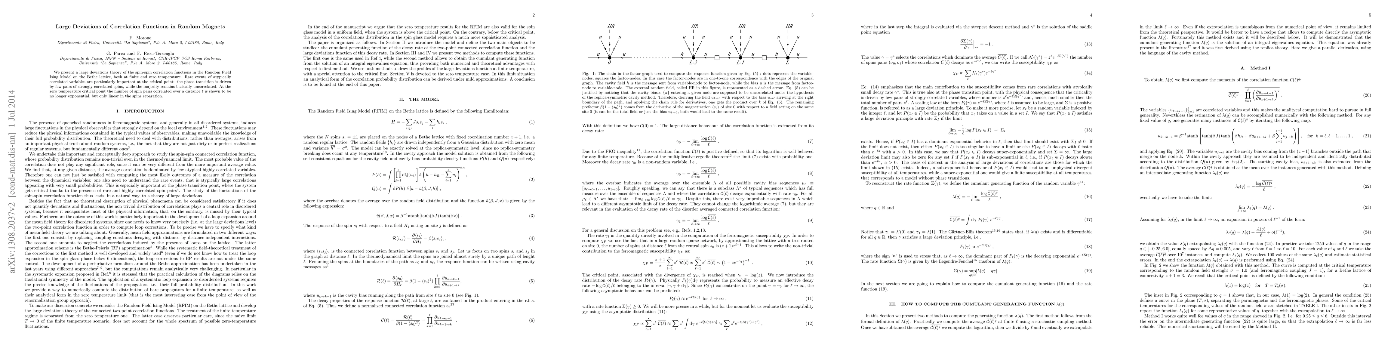 We present a large deviations theory of the spin-spin correlation functions in the Random Field Ising Model on the Bethe lattice, both at finite and zero temperature. Rare events of atypically correlated variables are particularly important at the critical point: the phase transition is driven by few pairs of strongly correlated spins, while the majority remains basically uncorrelated. At the zero temperature critical point the number of spin pairs correlated over a distance L is shown to be no longer exponential, but only linear in the spins separation.