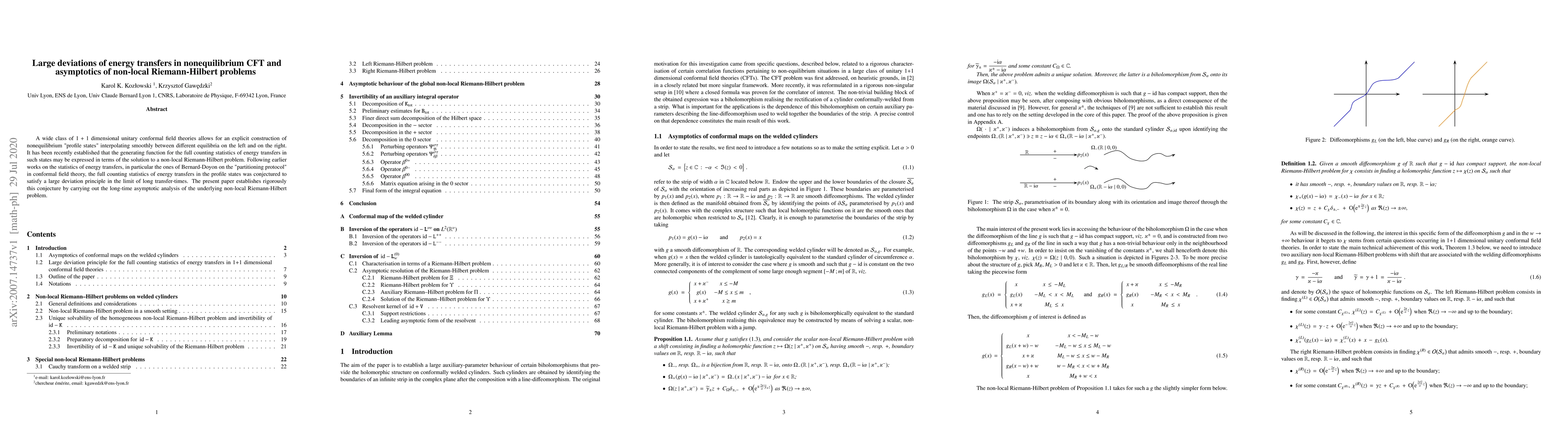 This paper rigorously proves the conjecture that the full counting statistics of energy transfers in nonequilibrium conformal field theories follow a large deviation principle in the long-time limit, using the solution of a non-local Riemann-Hilbert problem to describe the energy transfer generating function.