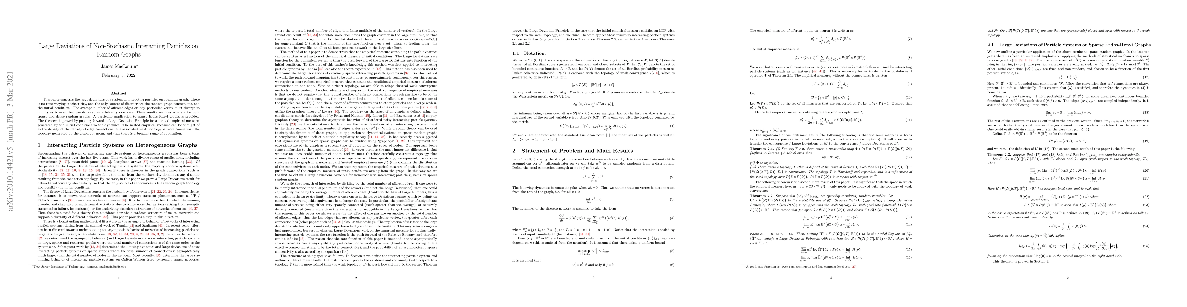 This paper investigates large deviations in a system of non-stochastic interacting particles on sparse random graphs, focusing on the divergence of afferent edges. It applies a Large Deviation Principle to a nested empirical measure, demonstrating broader applicability beyond just dense graphs.