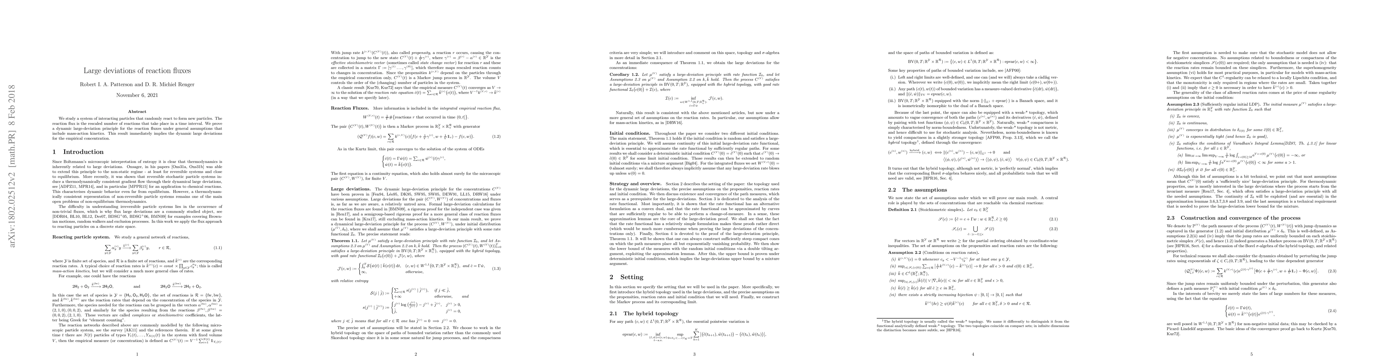 Researchers prove a dynamic large-deviation principle for reaction fluxes in systems of interacting particles, providing insight into the behavior of empirical concentrations.