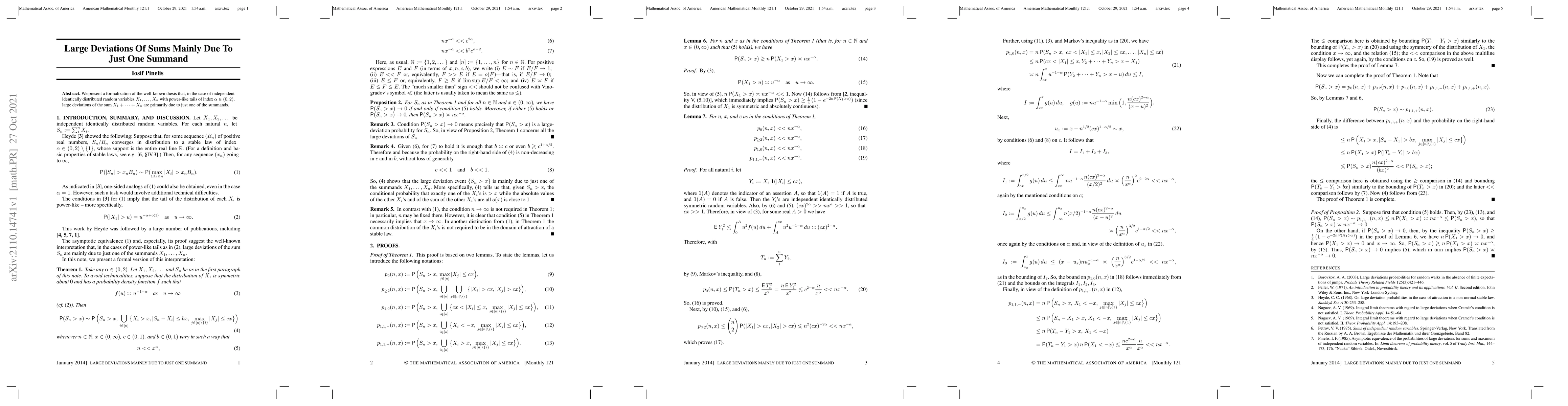 We present a formalization of the well-known thesis that, in the case of independent identically distributed random variables $X_1,\dots,X_n$ with power-like tails of index $\alpha\in(0,2)$, large deviations of the sum $X_1+\dots+X_n$ are primarily due to just one of the summands.