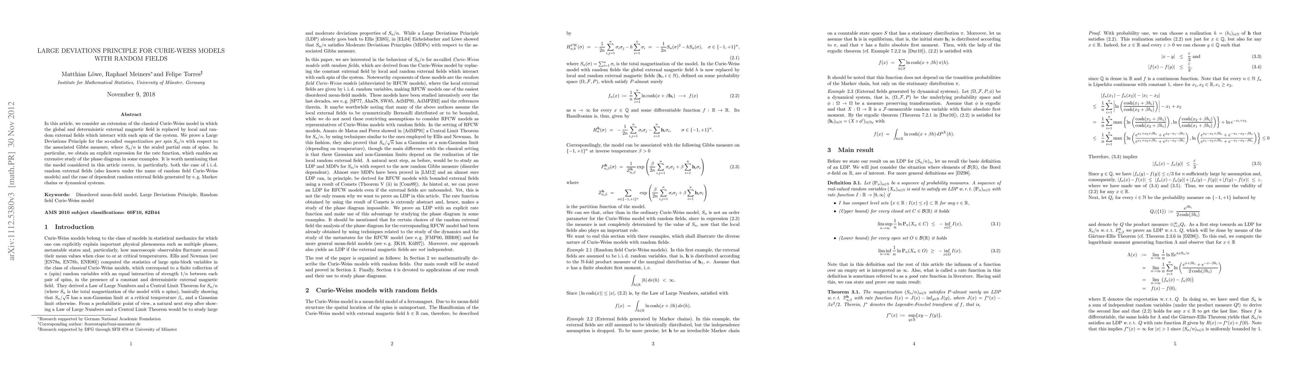 This paper extends the Curie-Weiss model to include random local fields, proving a Large Deviations Principle for the magnetization per spin. It provides an explicit rate function for the LDP, enabling detailed analysis of the phase diagram in various scenarios, including both independent and dependent random fields.