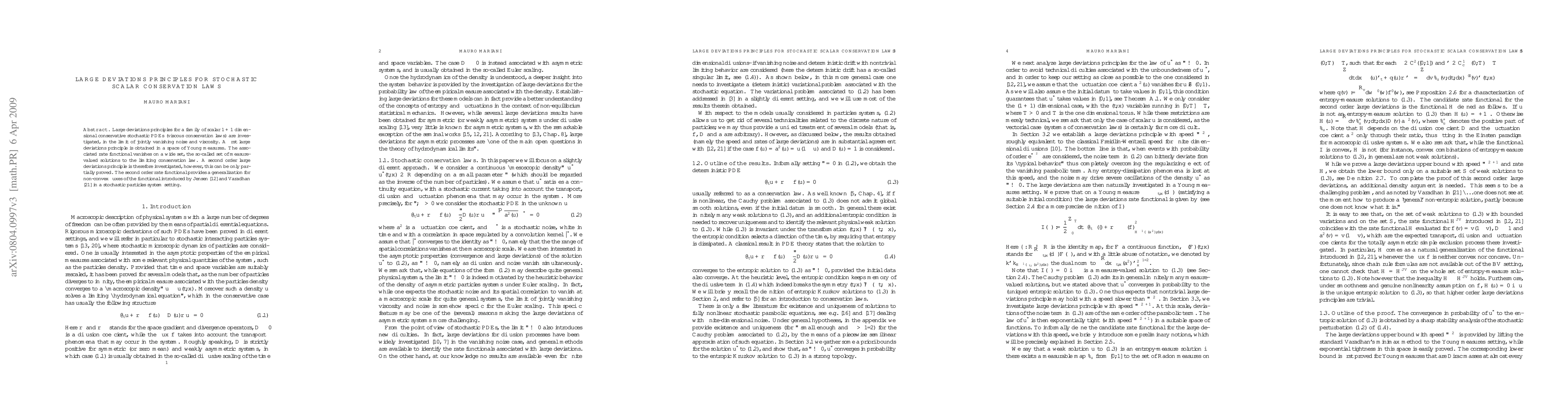 We investigate large deviations for a family of conservative stochastic PDEs (conservation laws) in the asymptotic of jointly vanishing noise and viscosity. We obtain a first large deviations principle in a space of Young measures. The associated rate functional vanishes on a wide set, the so-called set of measure-valued solutions to the limiting conservation law. We therefore investigate a second order large deviations principle, thus providing a quantitative characterization of non-entropic solutions to the conservation law.
