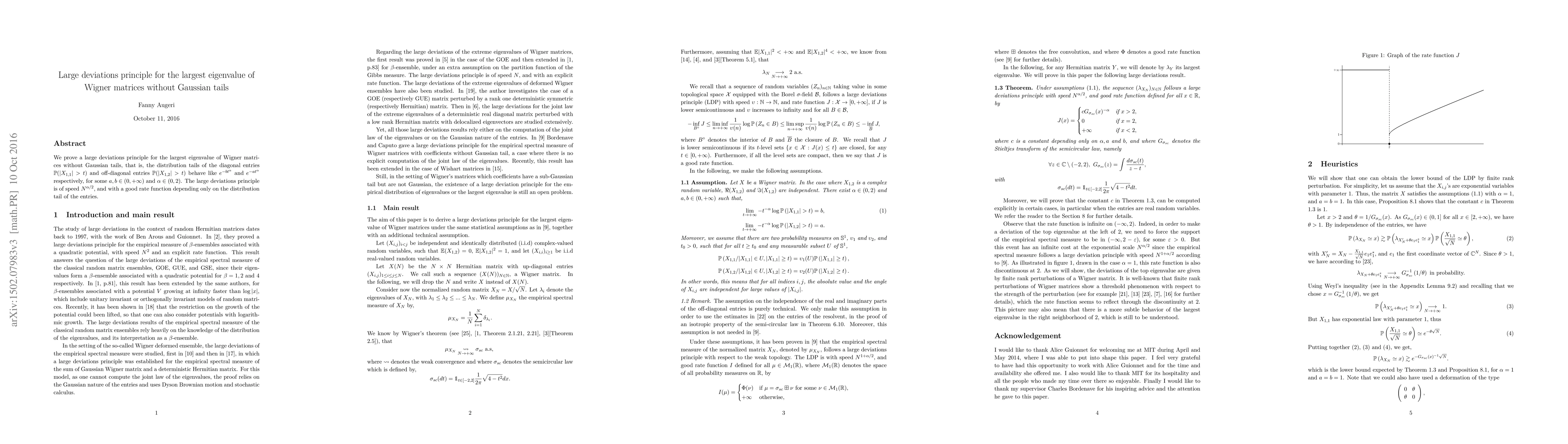 The research employs a large deviation principle (LDP) approach to analyze Wigner matrices without Gaussian tails, focusing on the largest eigenvalue behavior.