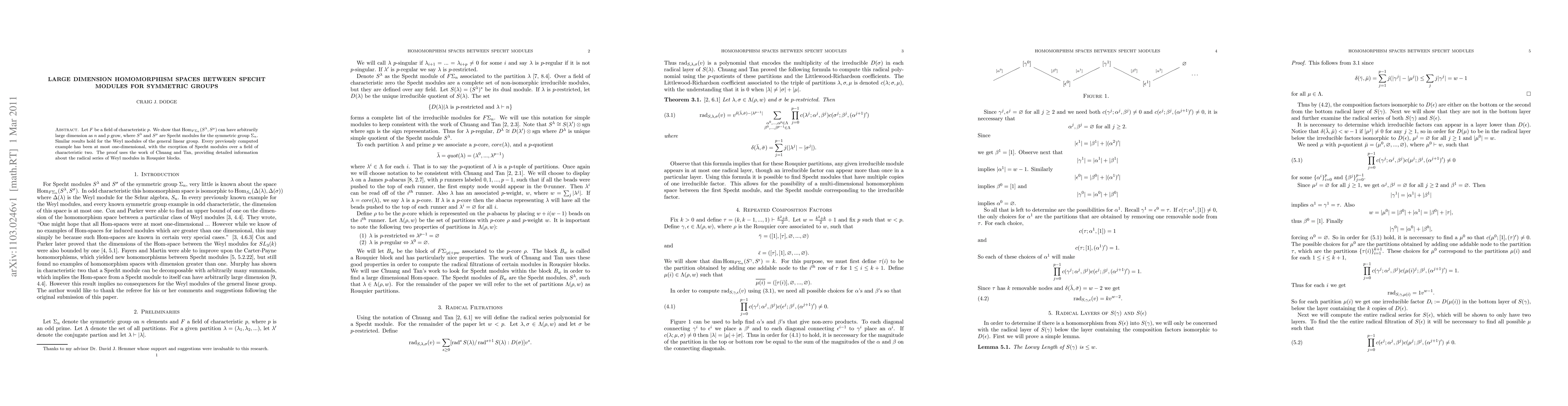 Summary: This paper demonstrates that the homomorphism spaces between Specht modules for symmetric groups, $\Hom_{F\Sigma_n}(S^\lambda, S^\mu)$, can have arbitrarily large dimensions as $n$ and $p$ increase, contrasting previous examples which were mostly one-dimensional. The proof leverages Chuang and Tan's work on the radical series of Weyl modules in Rouquier blocks.