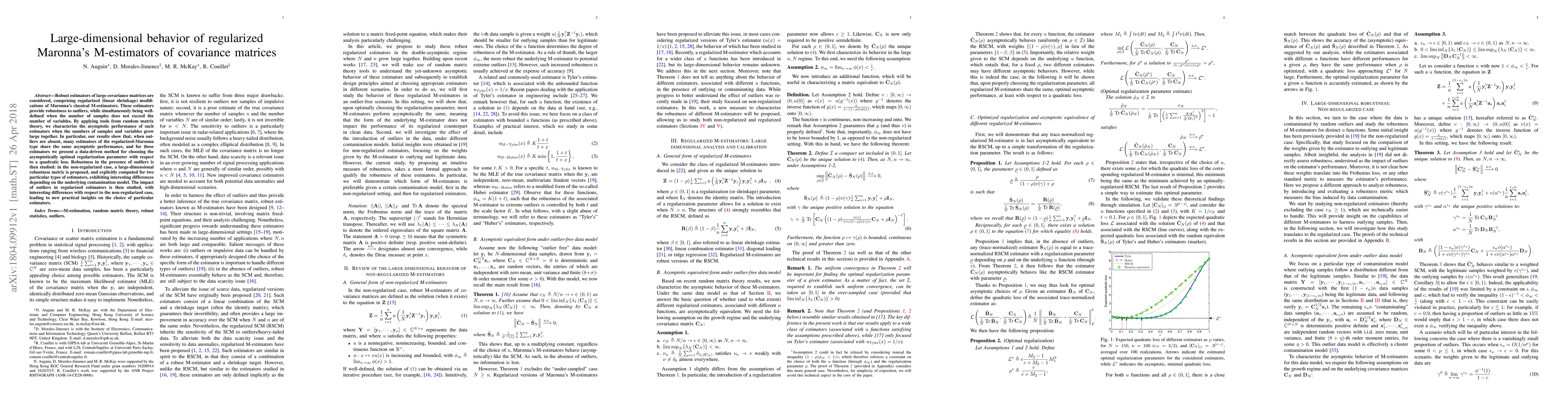 This paper investigates the asymptotic behavior of regularized Maronna's M-estimators for large covariance matrices, showing that they perform similarly in the absence of outliers. It proposes a data-driven method for selecting the optimal regularization parameter, and explores the impact of outliers on both regularized and non-regularized estimators, providing new insights into estimator choice.
