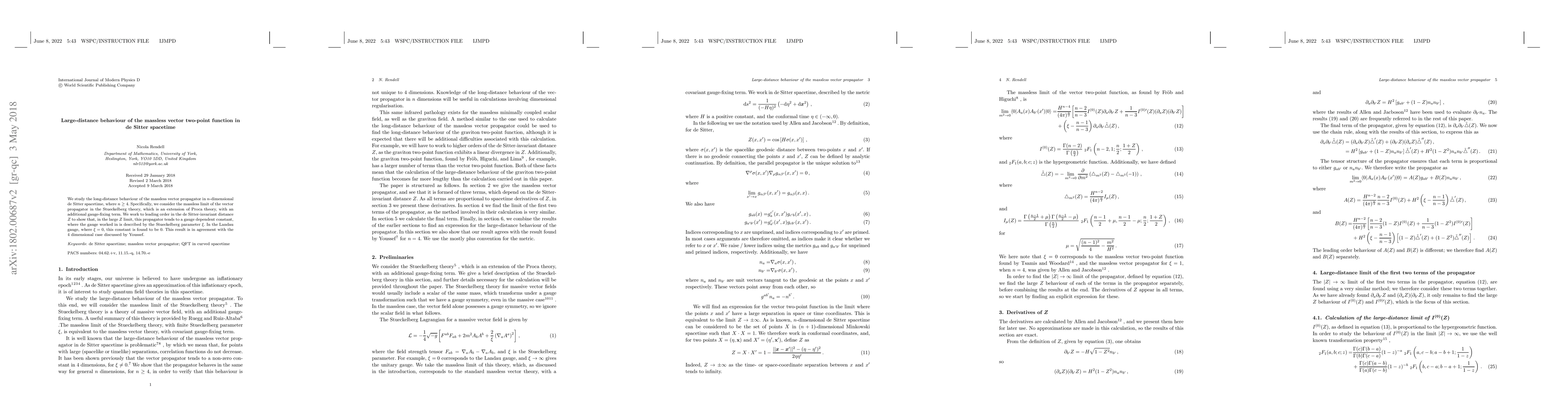 Researchers studied the behavior of a massless vector propagator in de Sitter spacetime, finding it tends to a constant value as distance increases, dependent on gauge parameters, with a zero value in Landau gauge.
