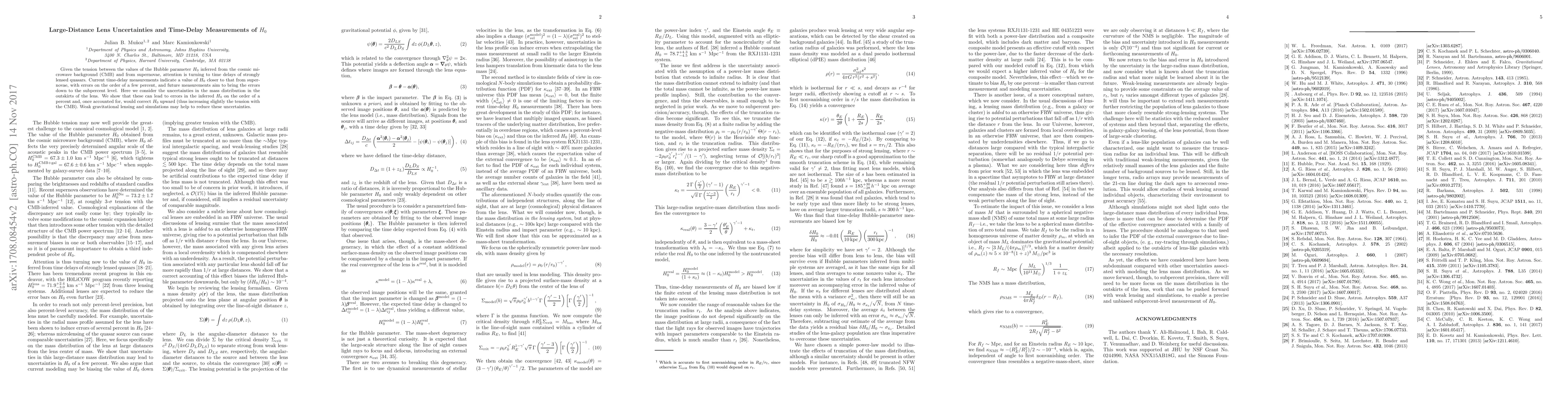 Given the tension between the values of the Hubble parameter $H_0$ inferred from the cosmic microwave background (CMB) and from supernovae, attention is turning to time delays of strongly lensed quasars. Current time-delay measurements indicate a value of $H_0$ closer to that from supernovae, with errors on the order of a few percent, and future measurements aim to bring the errors down to the subpercent level. Here we consider the uncertainties in the mass distribution in the outskirts of the lens. We show that these can lead to errors in the inferred $H_0$ on the order of a percent and, once accounted for, would correct $H_0$ upward (thus increasing slightly the tension with the CMB). Weak gravitational lensing and simulations may help to reduce these uncertainties.