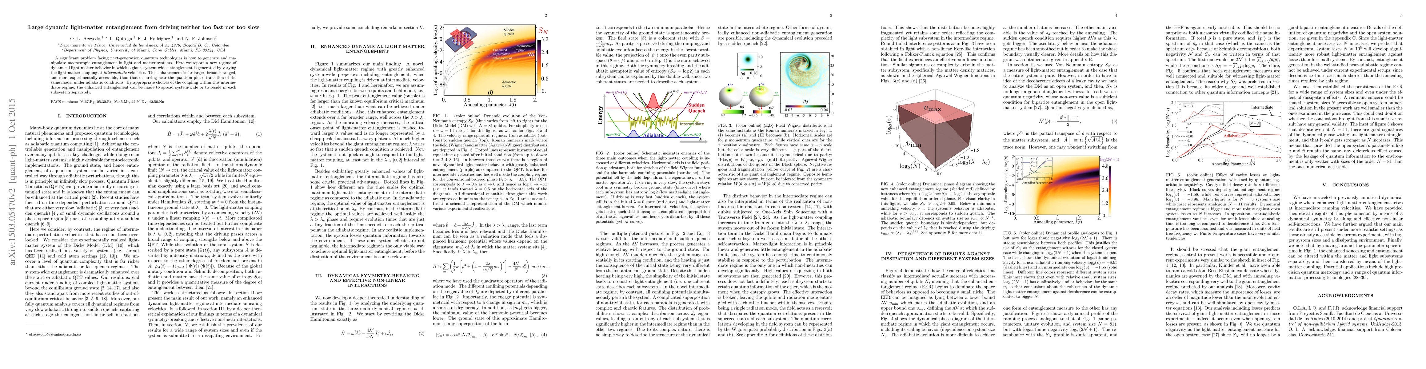 This research identifies a novel regime for generating macroscopic entanglement between light and matter by adjusting their interaction at intermediate speeds. This method produces a significantly larger and more versatile entanglement compared to traditional adiabatic approaches, allowing for either system-wide or localized entanglement.