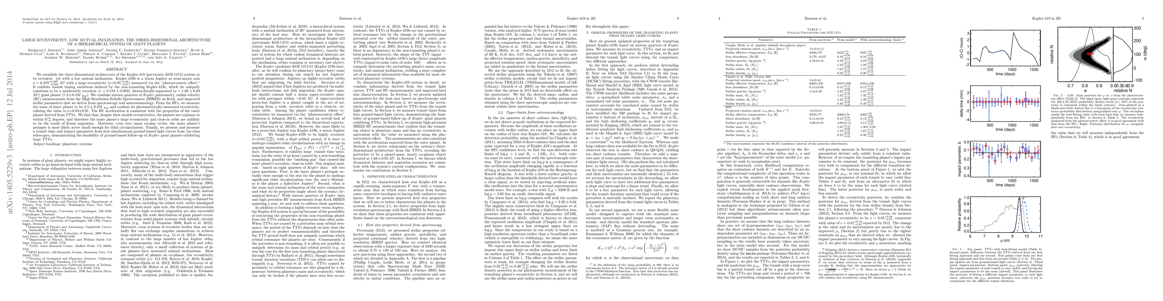 The research paper establishes the 3D architecture of the Kepler-419 planetary system, characterized by a warm Jupiter (Kepler-419b) with a large eccentricity (0.85) and a moderately eccentric, distant giant planet (Kepler-419c). Utilizing Kepler photometry, HIRES RV measurements, and improved stellar parameters, the study confirms the coplanarity of the planets (within 9 degrees) and rules out Kozai migration and tidal circularization as causes for the inner planet's eccentricity. Additionally, the research demonstrates the viability of ground-based follow-up observations for similar Kepler giant planets exhibiting large transit timing variations.